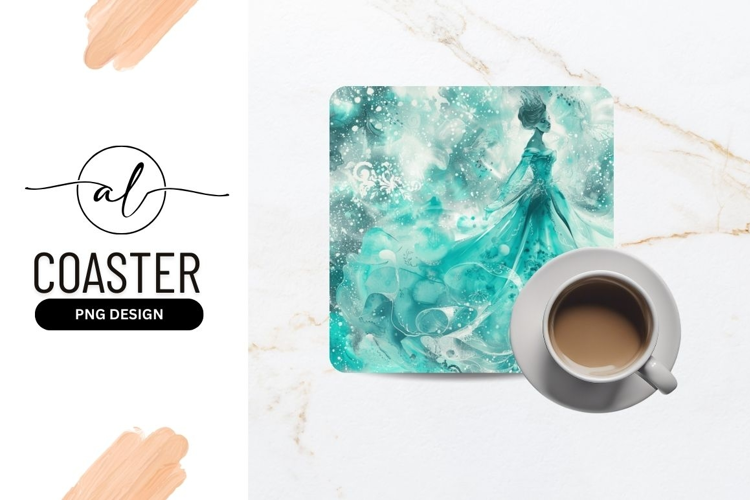 Elegant Magical Fairy Tale Wintery Snowy Background Icy Blue Square Coaster Enchanted Frozen Queen Square Coaster Png Design Frozen Queen Icy Gown