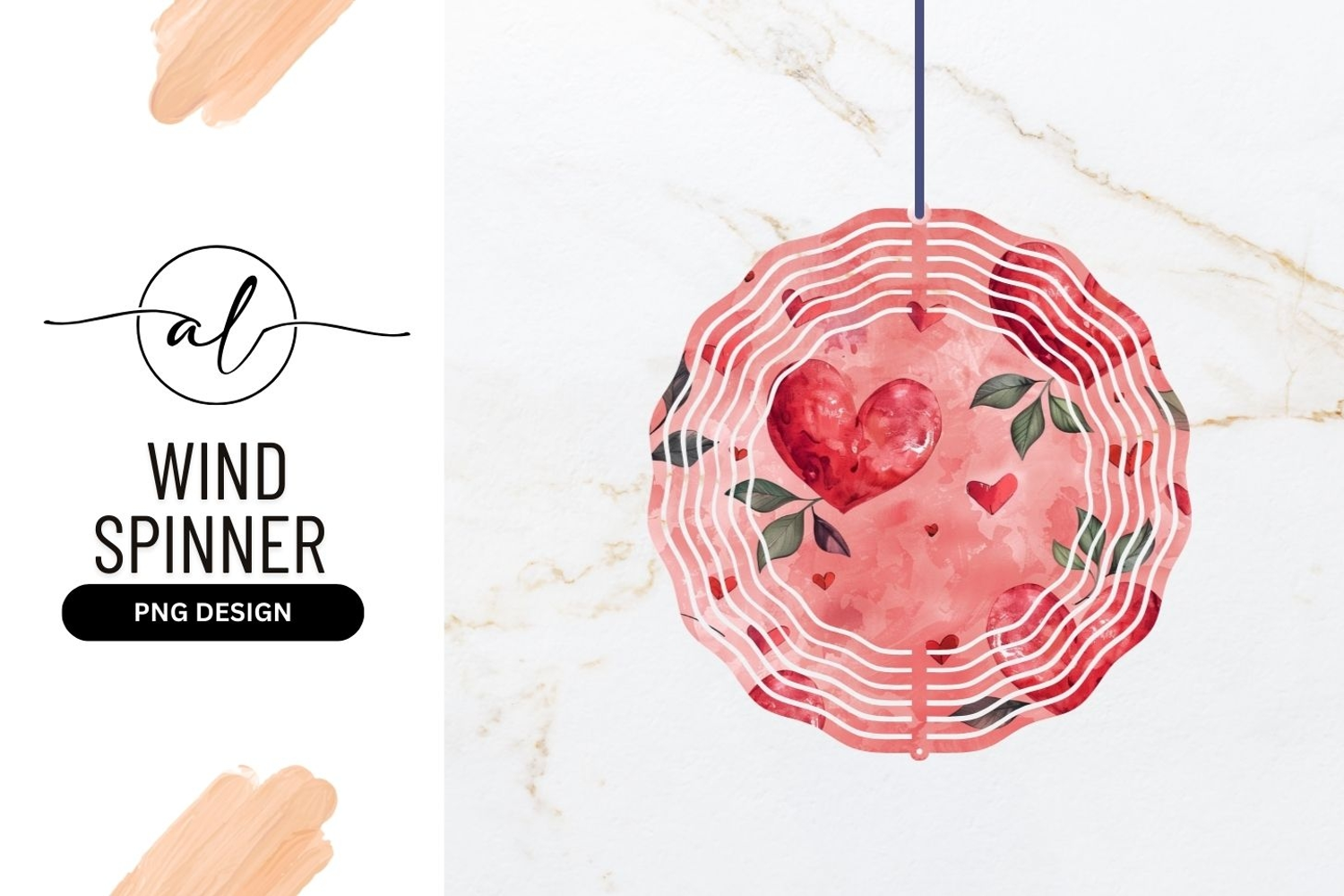 Green Leaves Valentine's Day Red Hearts Pink Background Heart Design Garden Decor Whimsical Decor Outdoor Decoration Round Wind Spinner Round Wind Spinner With Heart Design