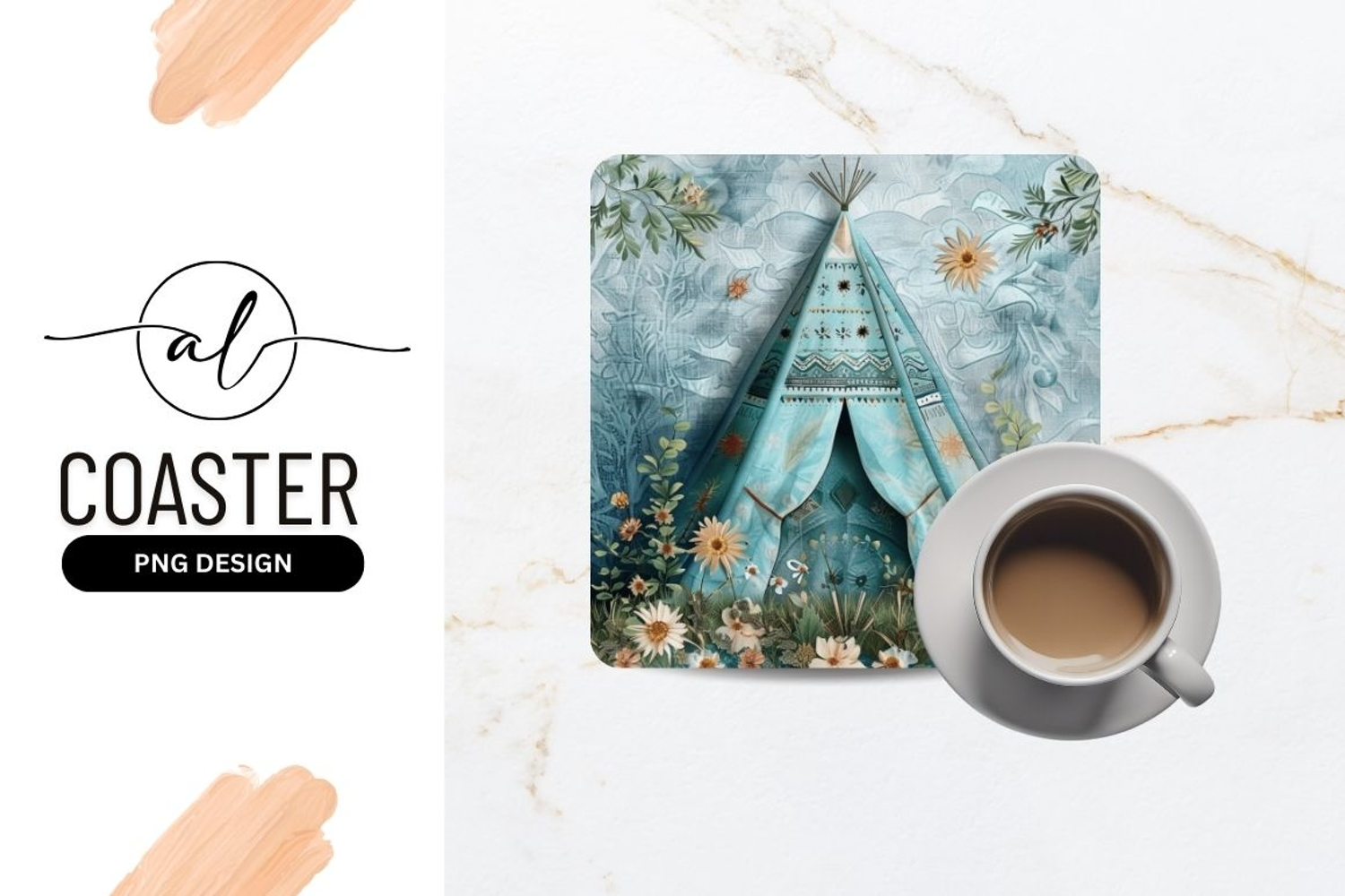 Bohemian tepee square coaster png design example image 1