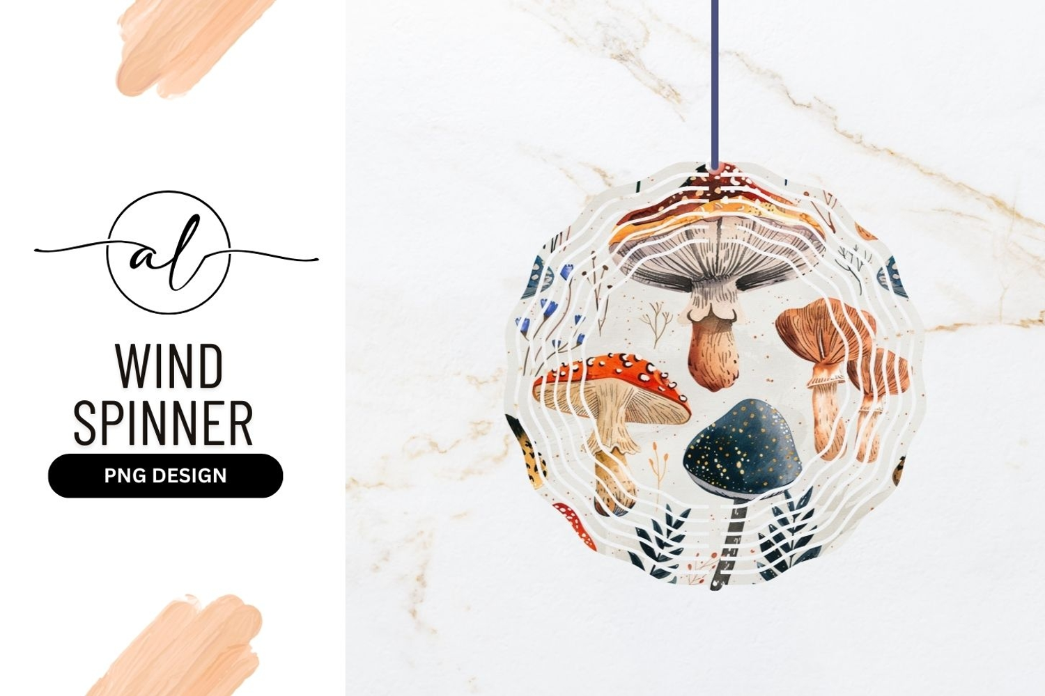 Whimsical mushroom round wind spinner png design example image 1