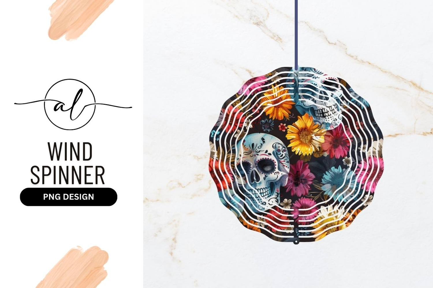 Similar Design Products to Colorful sugar skull and flower wind spinner png design