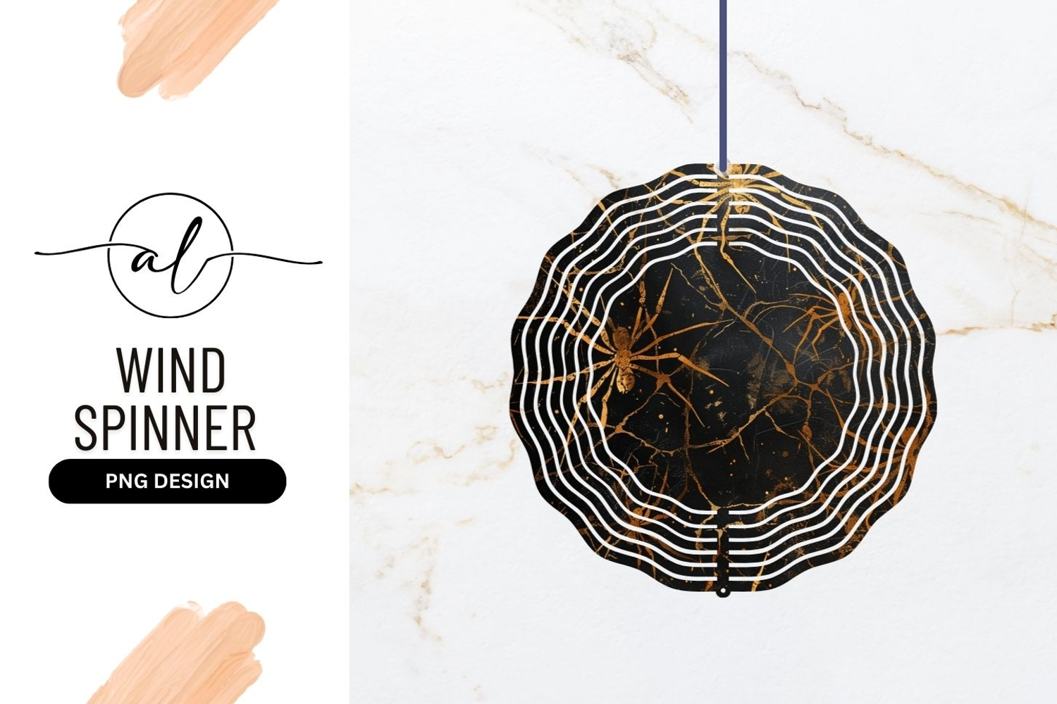 Golden spider web round wind spinner png design example image 1