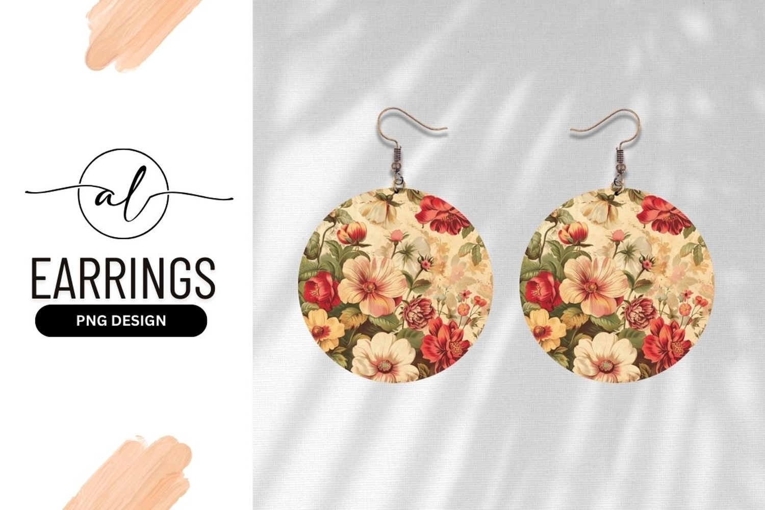Floral Pattern Green Leaves Vintage Floral Jewelry Design Earring Colorful Flowers Png Design Round Earring Nature-inspired Vintage Floral Round Earring Png Design