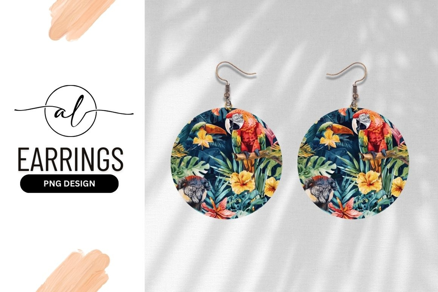 Hibiscus Tropical Birds Parrots Jewelry Design Colorful Flowers Toucans Png Design Round Earring Nature-inspired Round Earring Vegetable Pattern Vegetable Design'