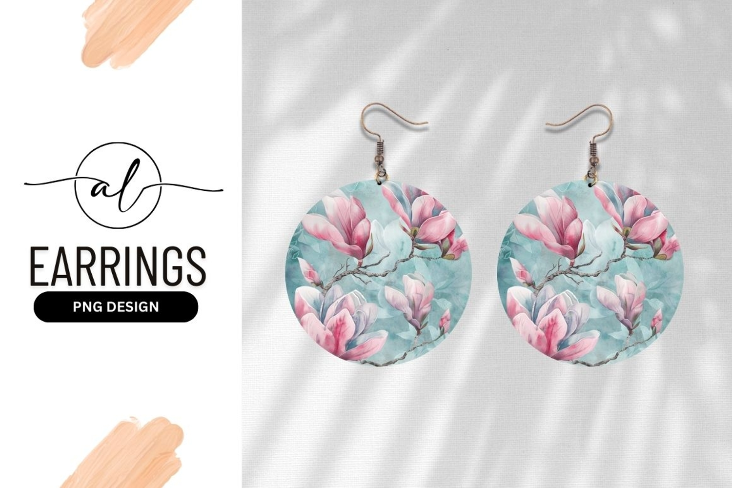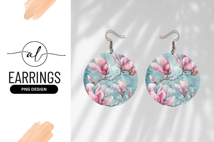 Flower Design Jewelry Design Light Blue Background Magnolia Flowers Png Design Round Earring Magnolia Illustration Stylish Earring Elegant Earring Round Earring Png Design With Magnolia Flowers