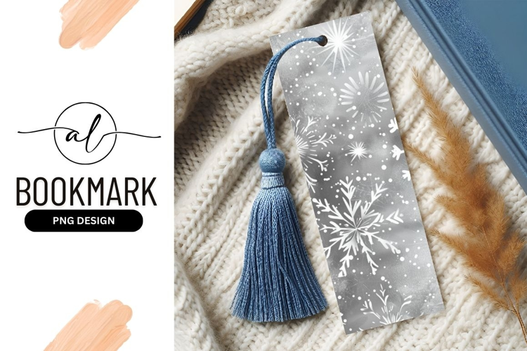 White Snowflake and Dot Pattern on Silver Background Bookmark Design
