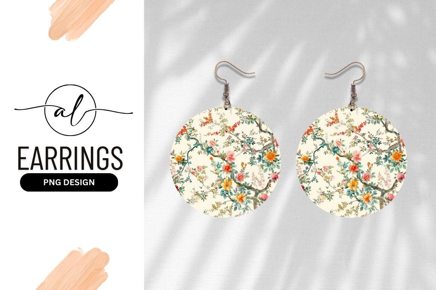 Jewelry Accessory Floral Pattern Greenery Colorful Flowers Earring Design Png Design Round Earring Nature-inspired Floral Round Earring Png Design