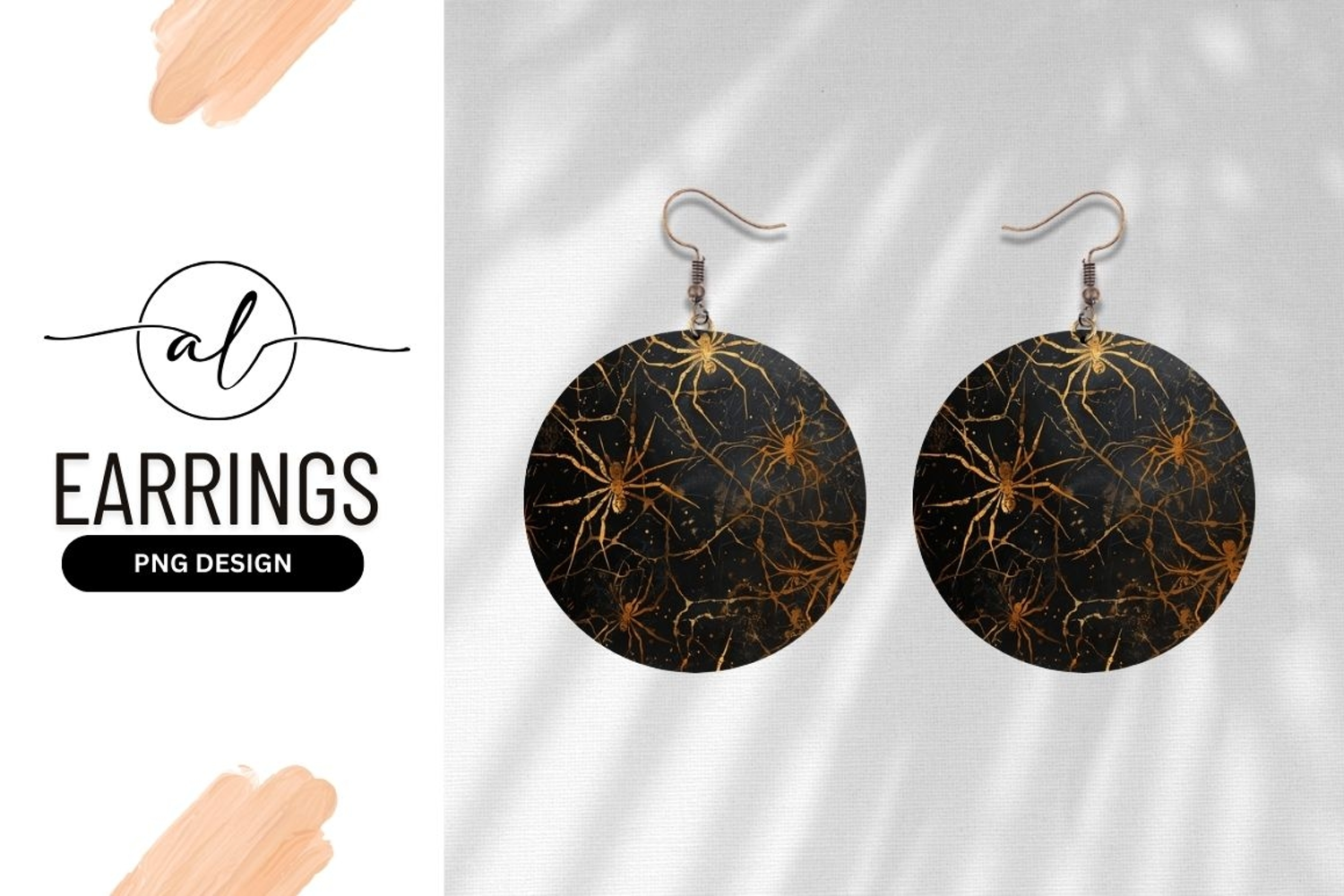 Golden spider web round earring design example image 1