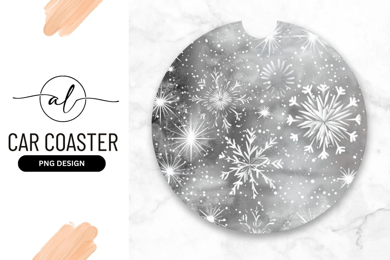 Winter snowflake round car coaster png design example image 1