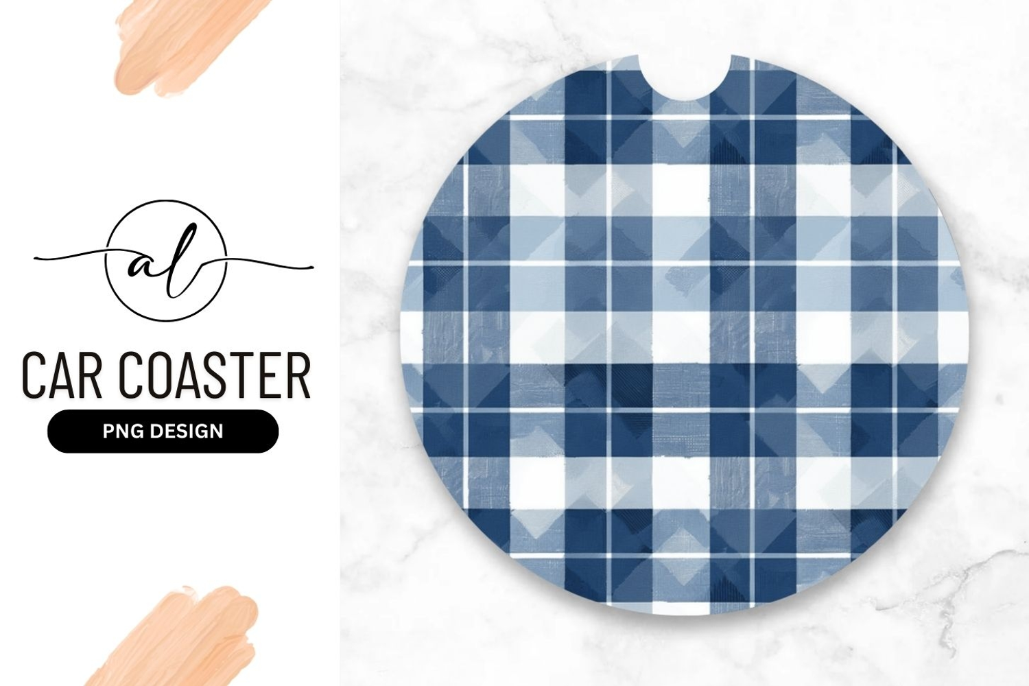 Blue plaid round car coaster png design example image 1
