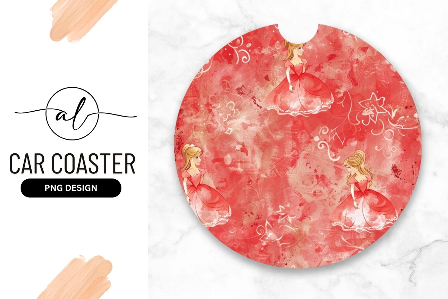 Round car coaster with princess design example image 1