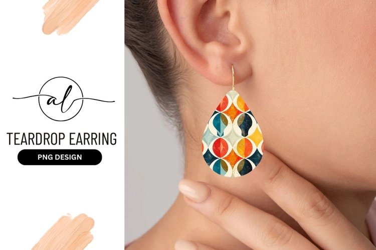 Geometric Pattern Retro Design Jewelry Design Fashion Accessory Teardrop Earring Png Design Modern Earring Colorful Earring Vintage-inspired Vibrant Teardrop Earring Png Design