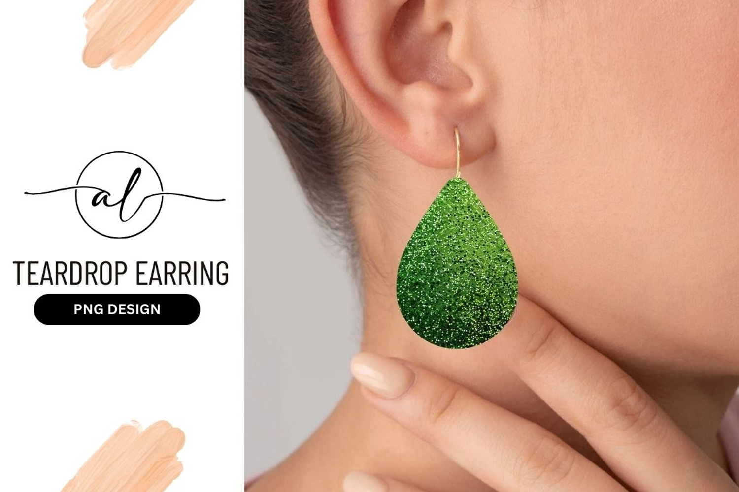 Green glitter teardrop earring design png example image 1