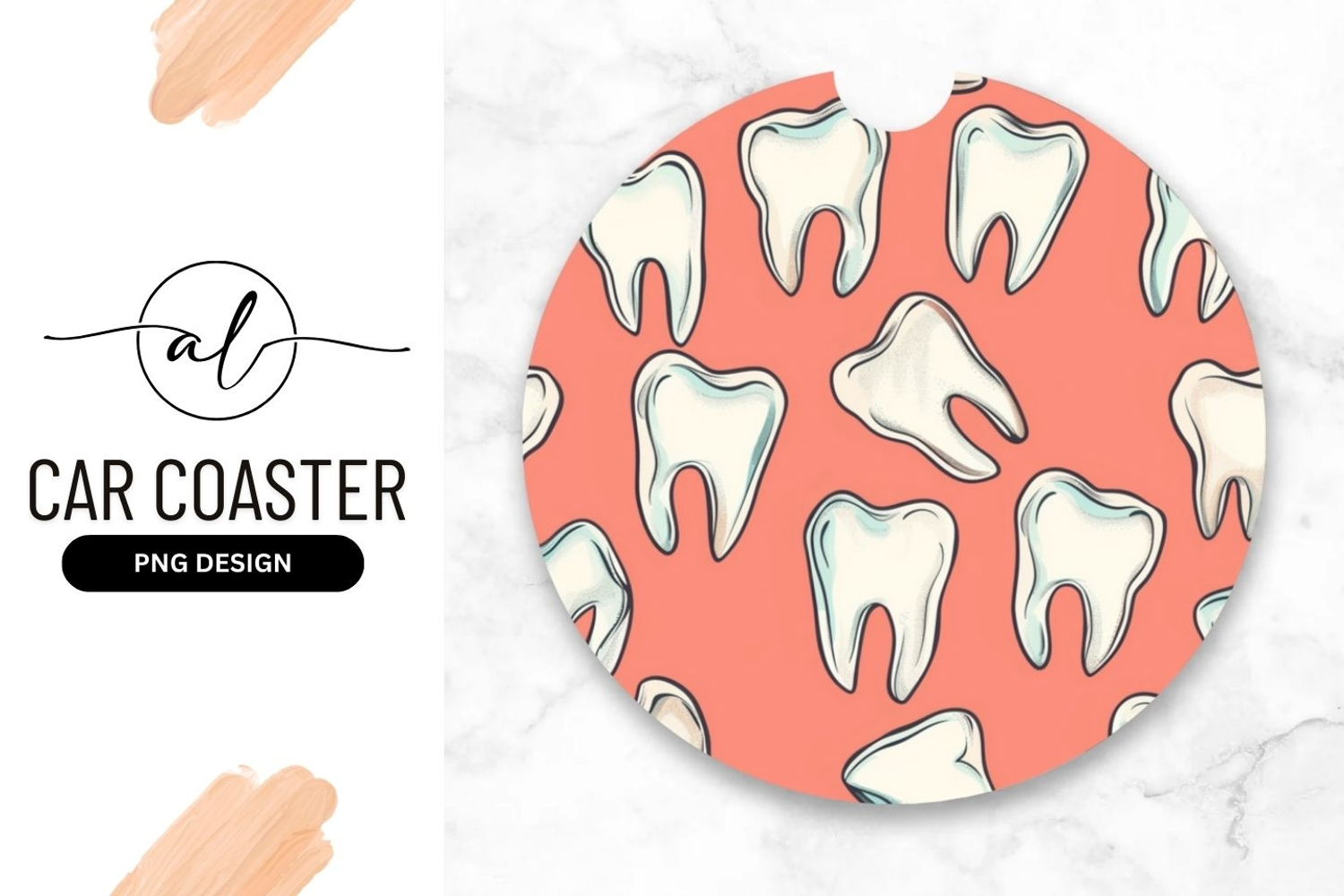 Cartoon Teeth Cup Holder Fun Design Car Coaster Peach Background Tooth Pattern Scratch Protection Auto Accessory Spill Protection Round Car Coaster With Tooth Pattern Design