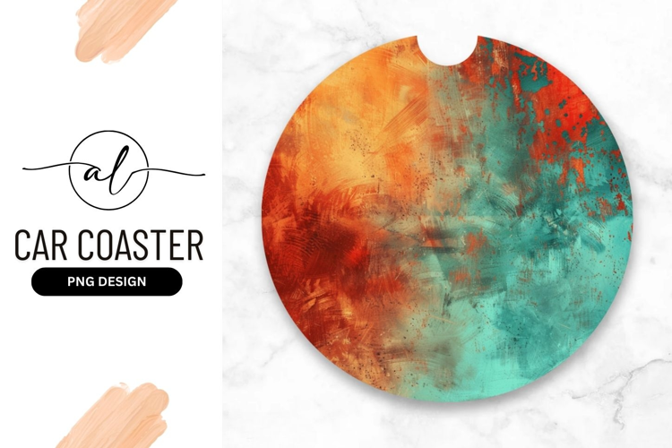 Colorful Orange Teal Red Abstract Design Moisture Car Coaster Round Coaster Round Car Coaster Png Design Protect Surfaces