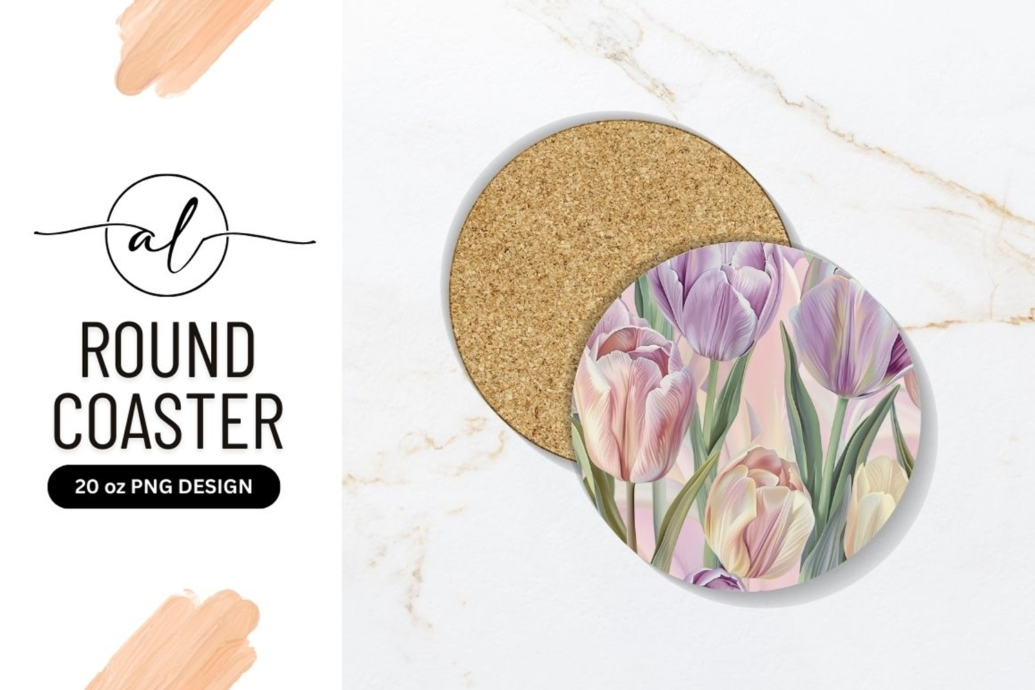 Flower Transparent Background Pastel Tulips Coaster Drink Coaster Home Decor Png Design Round Coaster Round Coaster Png Design With Tulips