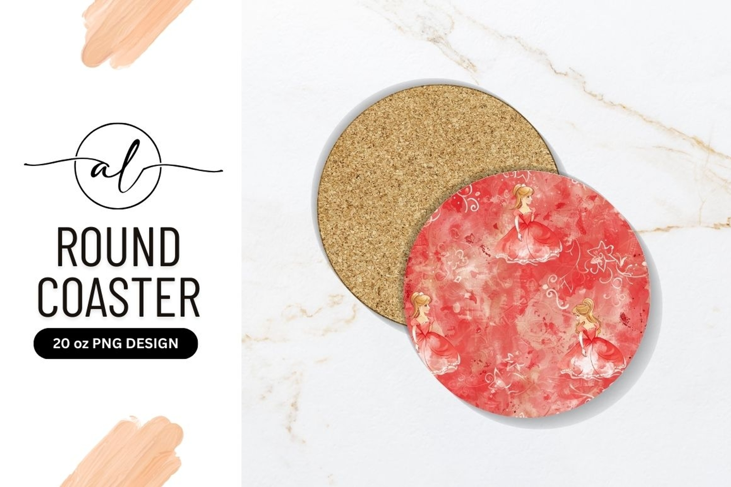 Princess Floral Design Home Decor Red Dress Table Decor Png Design Magical Elements Round Coaster Decorative Coaster Enchanted Princess Round Coaster Png Design