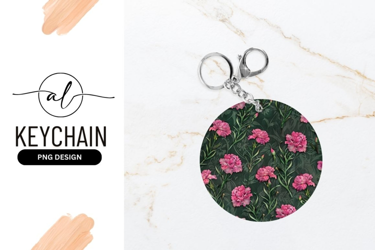 Green Leaves Floral Design Keychain Dark Background Pink Carnations Round Keychain Elegant Keychain Nature-inspired Keychain Accessory Round Keychain With Floral Design