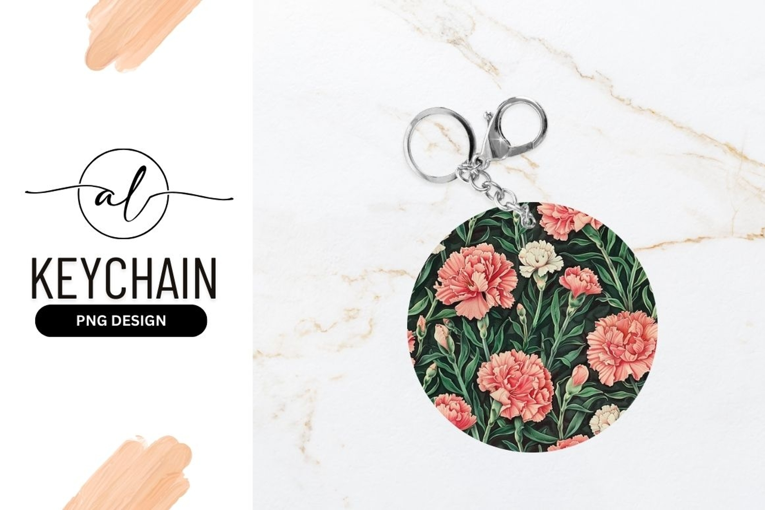 Round keychain with floral carnation design example image 1