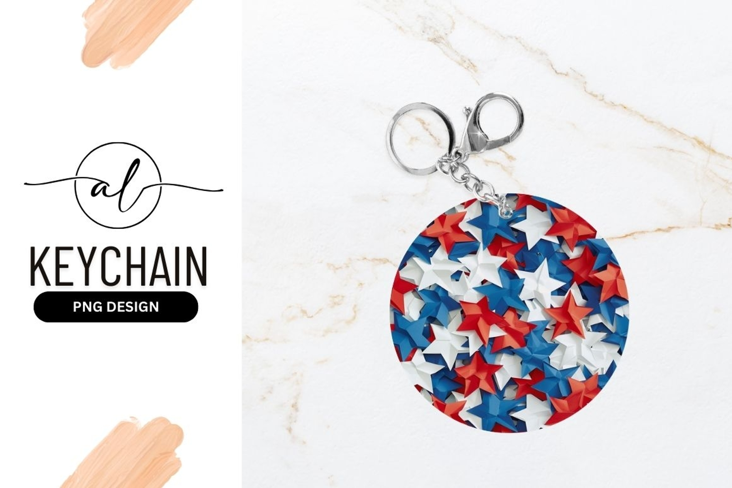 Round Blue White Red Patriotic Stars Fourth Of July American Flag Keychain Patriotic Star Keychain Design