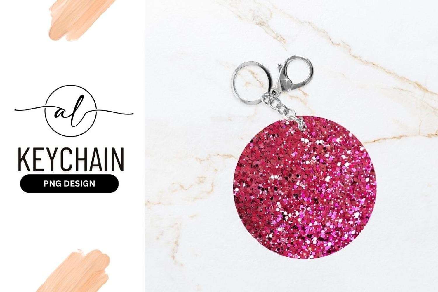 Pink Red Glitter Accessory Circular Keychain Round Keychain Dynamic Pattern Sparkly Design Round Keychain With Sparkly Pink And Red Design