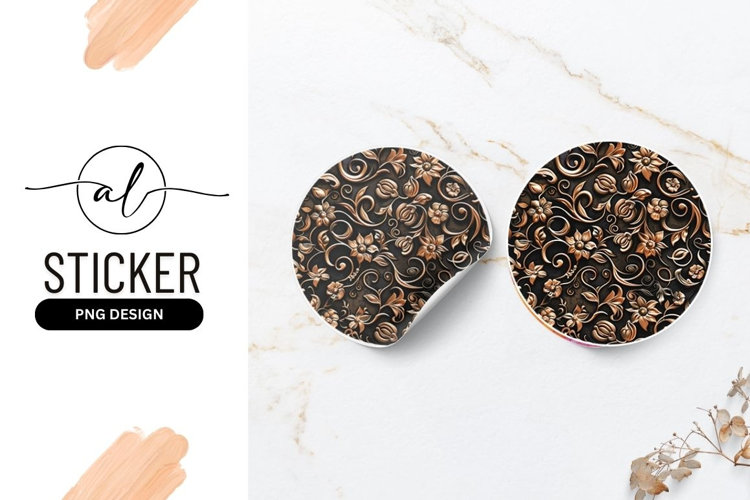 Sticker Floral Pattern Round Sticker Dark Background Elegant Design Png Design Laptop Sticker Decorative Sticker Golden Accents Elegant Floral Round Sticker Png Design