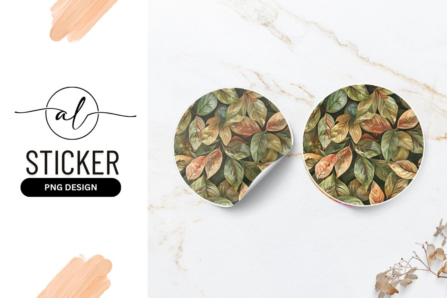 Round sticker with tropical leaf design