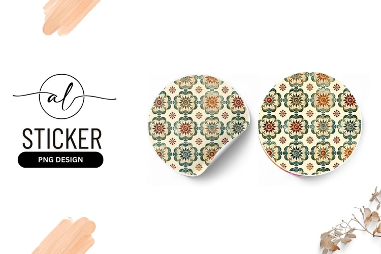 Floral pattern round sticker png design example image 1