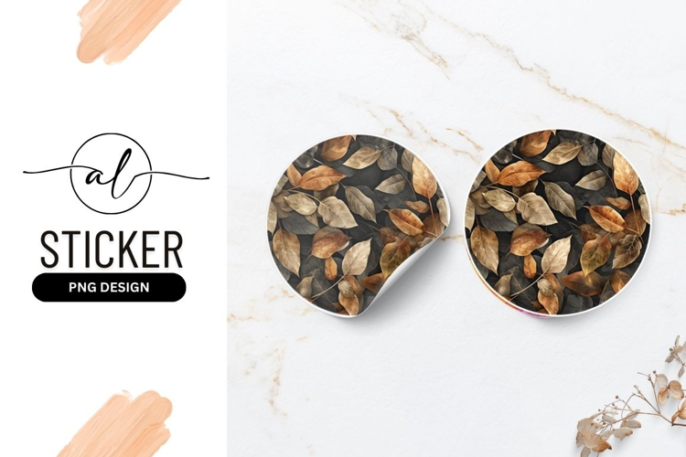 Autumn leaves round sticker png design example image 1