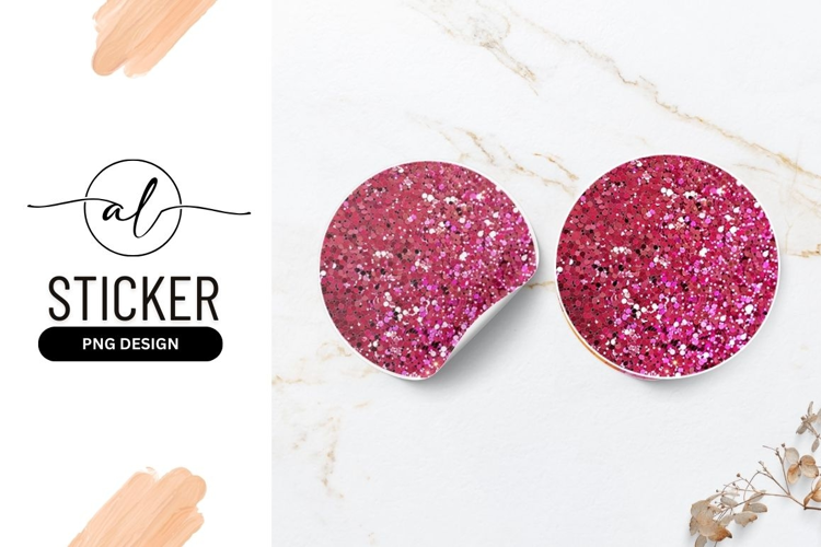 Pink glitter round sticker png design example image 1