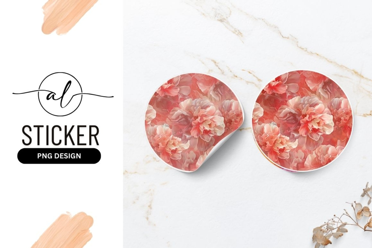 Pink Flowers Floral Design Red Flowers Round Sticker Laptop Sticker Journal Sticker Gift Decoration Decorative Sticker Water Bottle Sticker Round Sticker With Delicate Floral Design