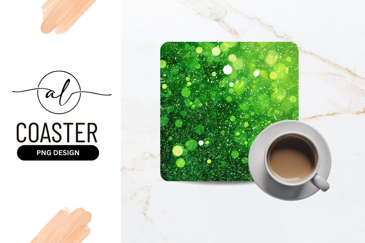 Green bokeh square coaster png design example image 1