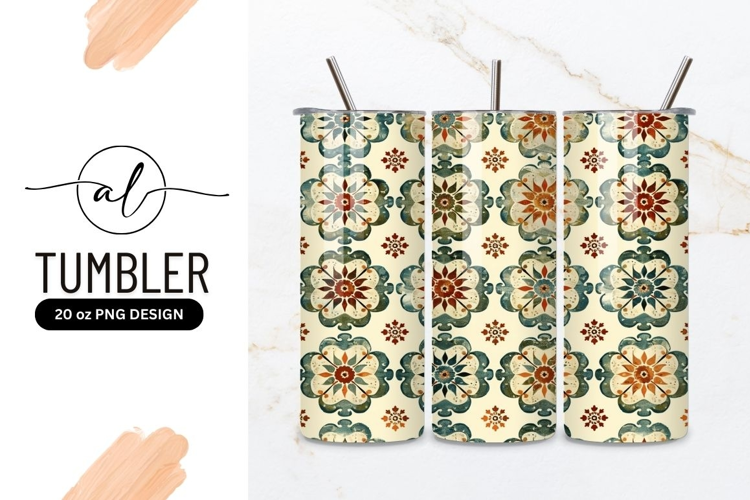 Elegant Green Flower Blue Red Floral Pattern Symmetrical Tumbler Png Design Floral Pattern Tumbler Png Design
