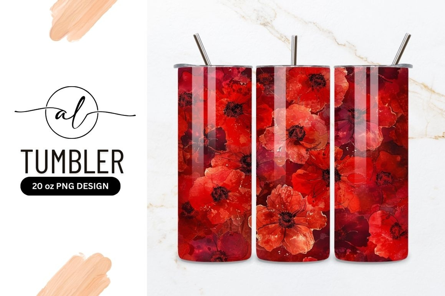 Bold Elegant Artistic Vibrant Flower Pattern Accessory Red Poppy Tumbler Design Nature-inspired Vibrant Red Poppy Flower Tumbler Design