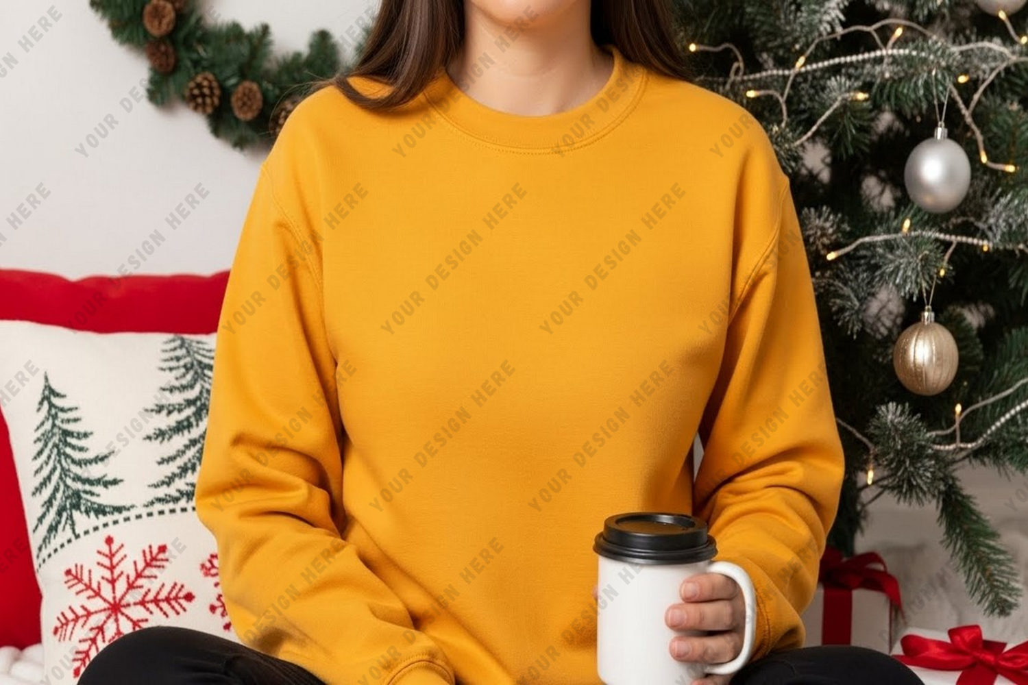 Cozy yellow christmas t-shirt mockup example image 1
