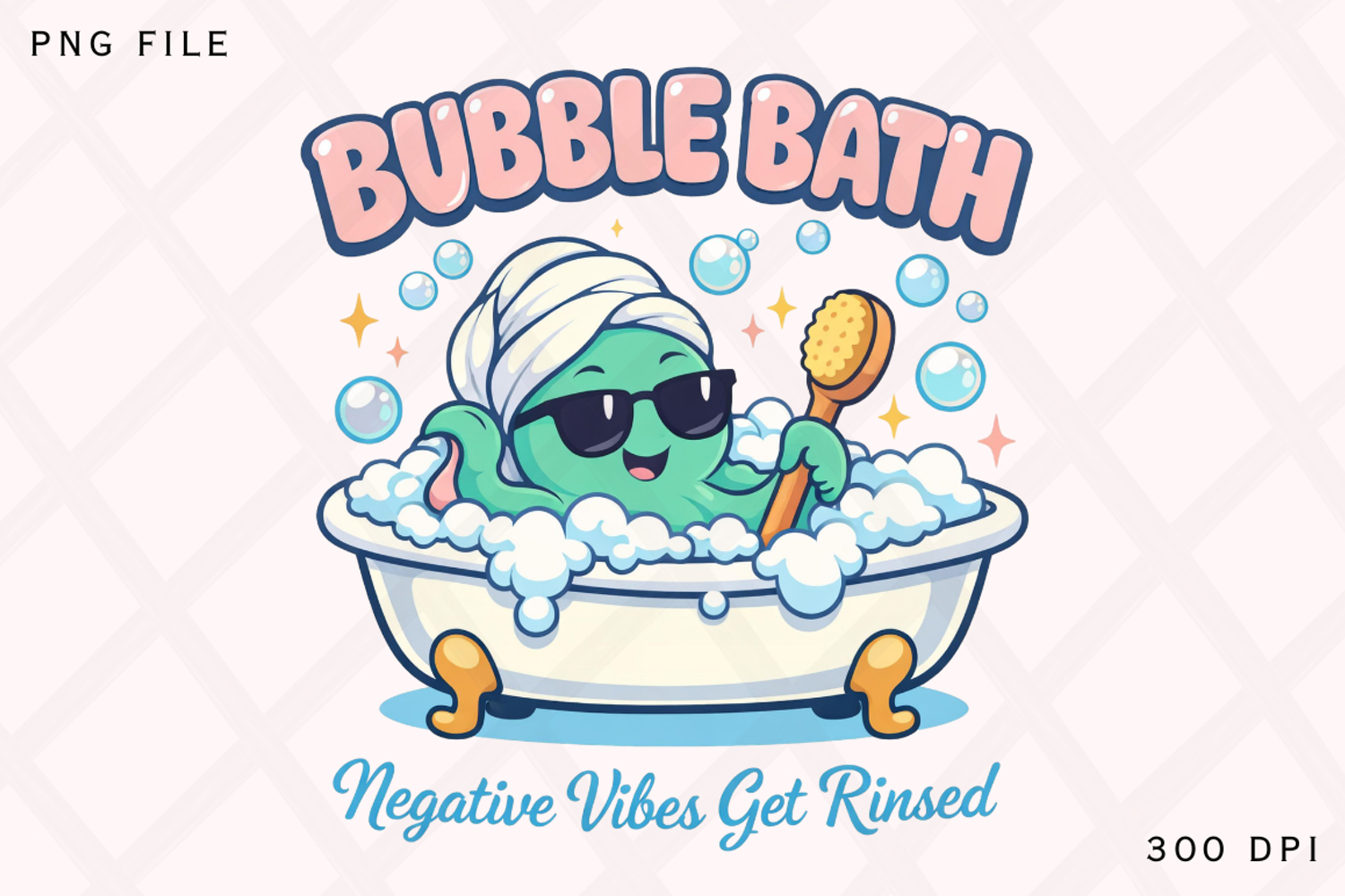 Bubble Bath Negative Vibes Rinsed PNG Design example image 1