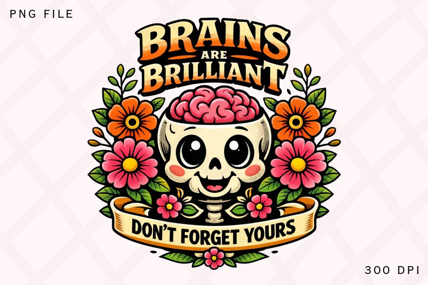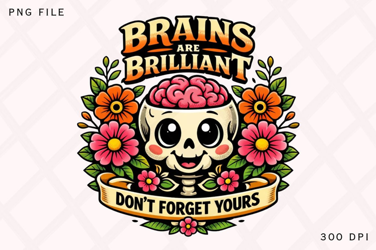Brains Are Brilliant Skull Brain PNG Design example image 1