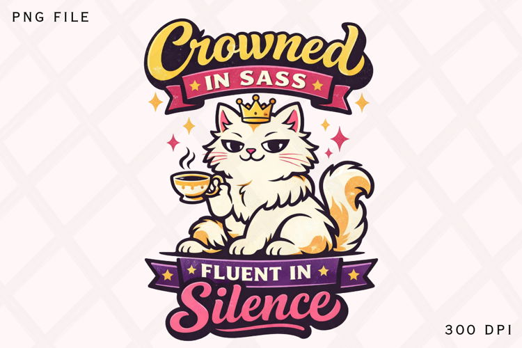 Crowned in Sass Fluent in Silence Funny Cat PNG Design