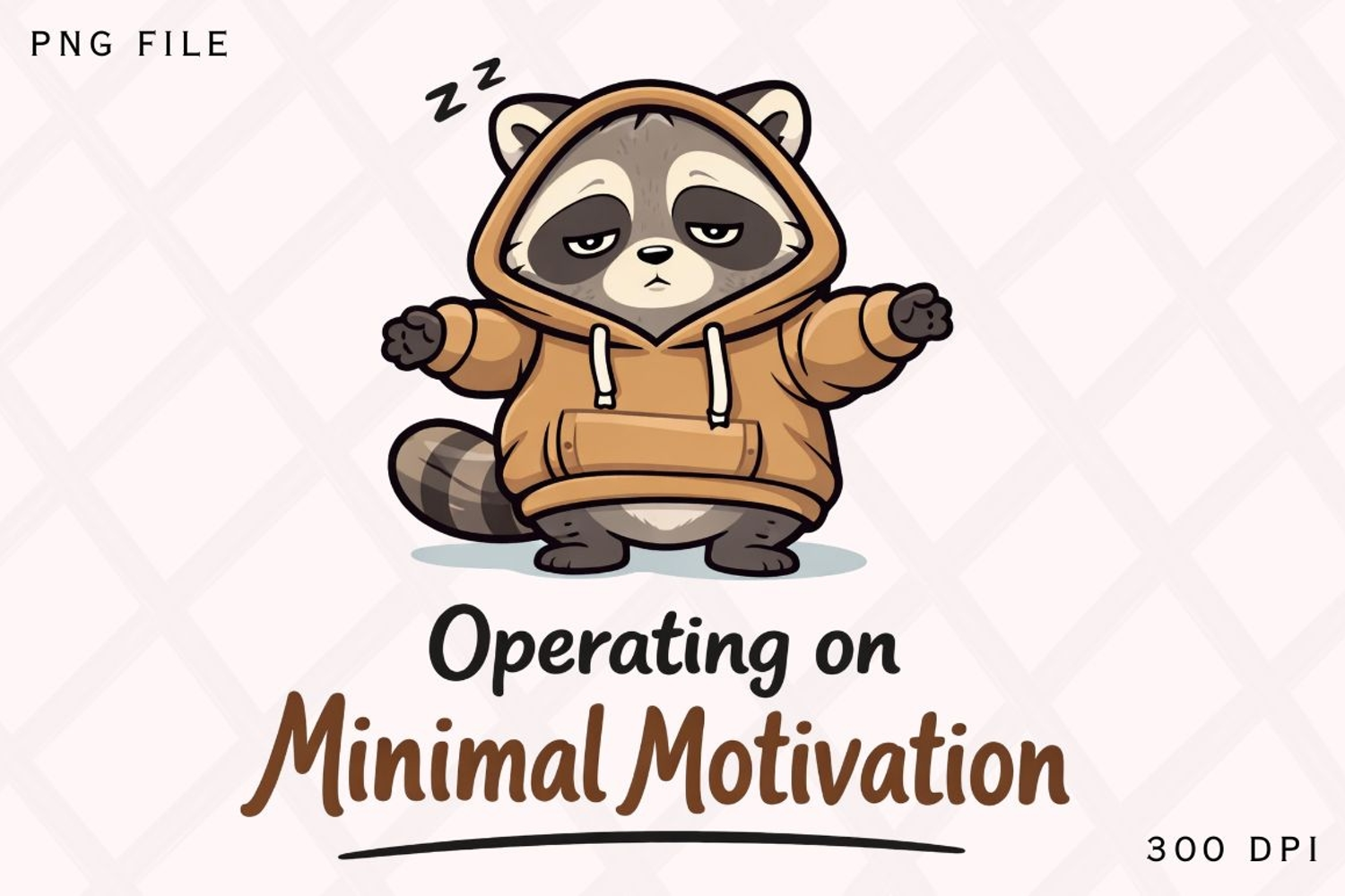 Operating on Minimal Motivation PNG, Funny Raccoon Hoodie PNG, Lazy Raccoon Sublimation Design