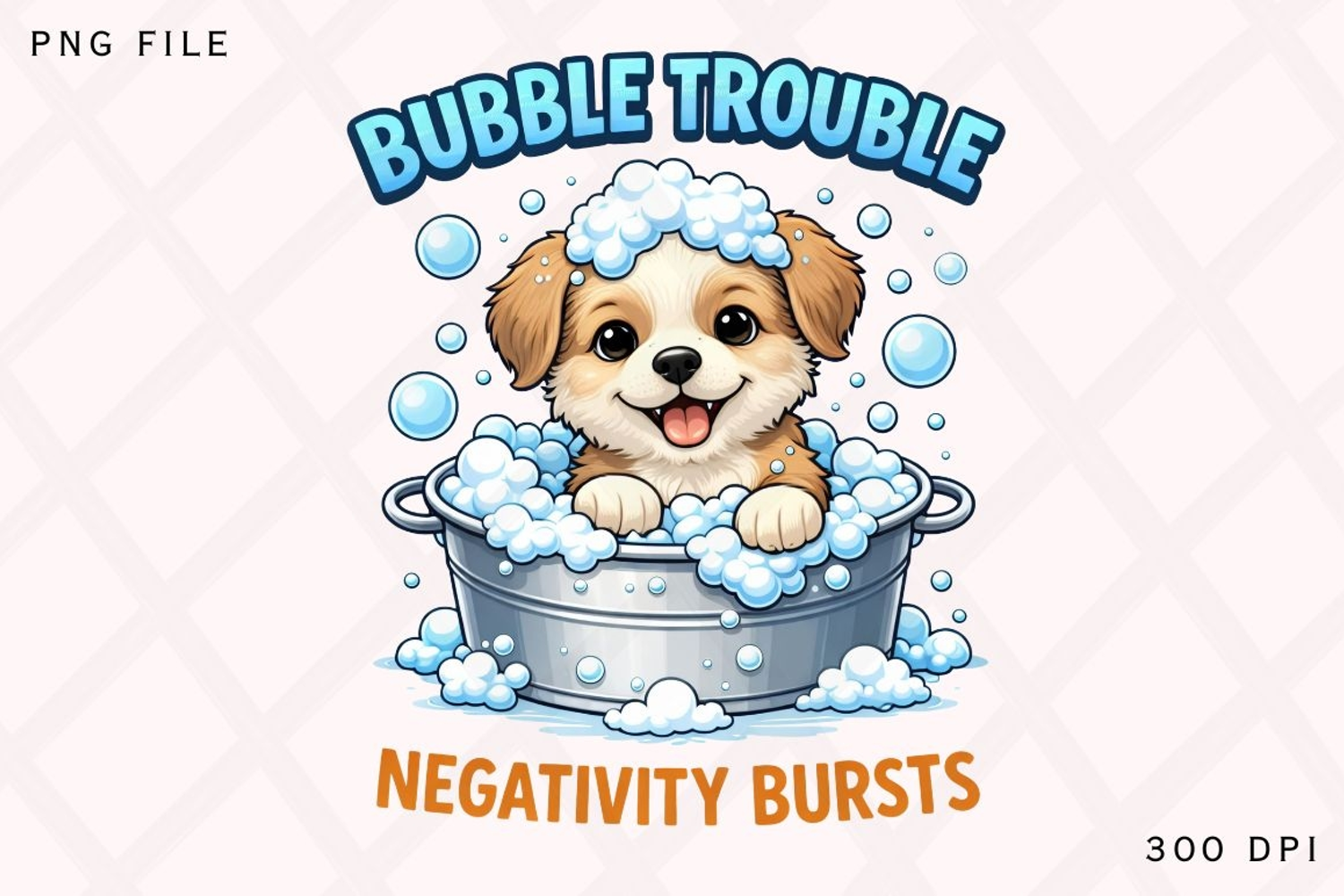 Bubble Trouble Negativity Bursts PNG, Cute Bath Puppy PNG, Funny Dog Bath Sublimation Design