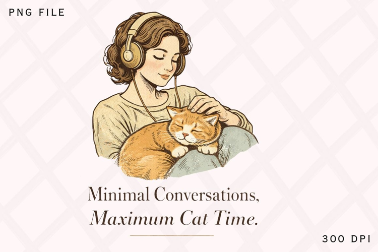 Minimal Conversations Maximum Cat Time PNG, Cat Lover Introvert PNG Design, Cozy Cat Lady PNG, Vintage Cat Sublimation File, White Last Add PNG Design