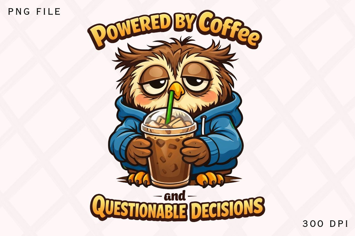 Powered by Coffee and Questionable Decisions Owl PNG example image 1