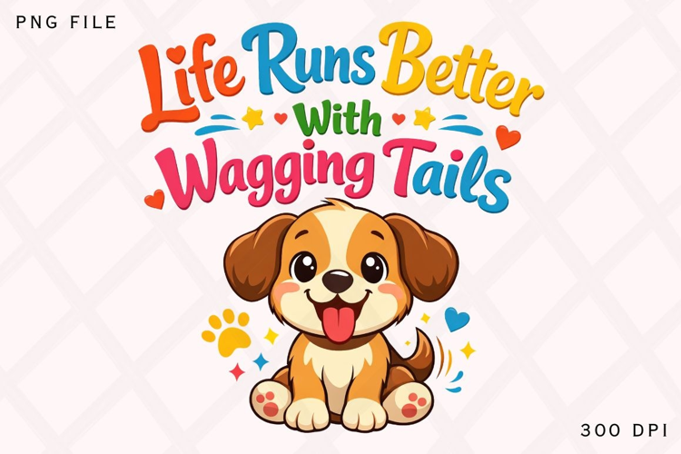 Life Runs Better With Wagging Tails Cute Puppy Shirt Design, Funny Dog Lover Quote Graphic, Pet Lover Gift PNG Design