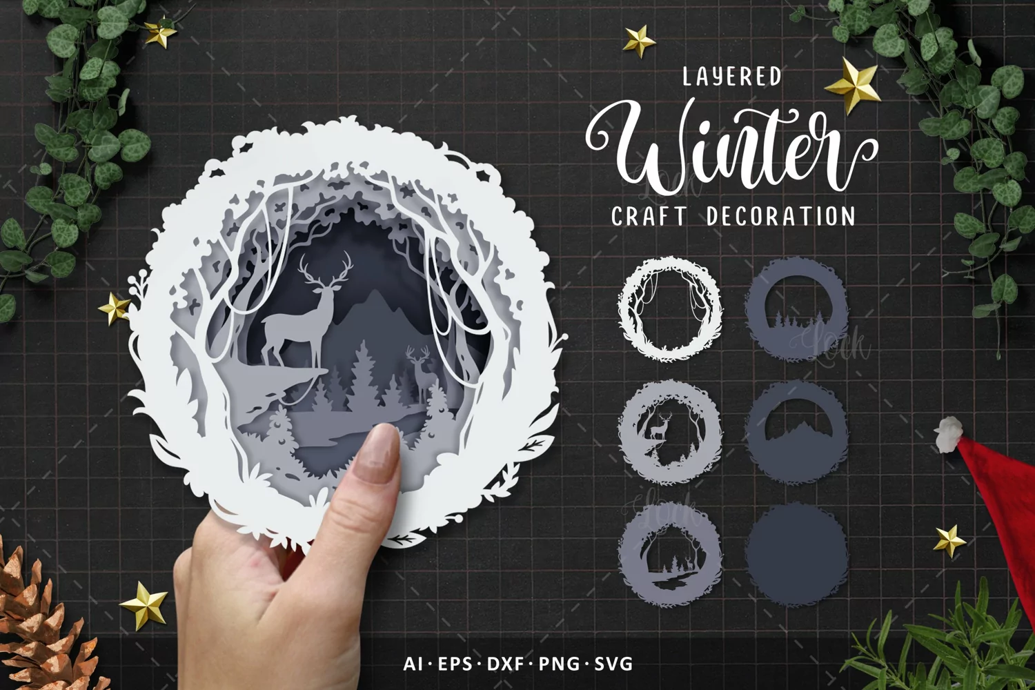 Winter Papercut Layered Decoration, Winter 3D Layered example image 1