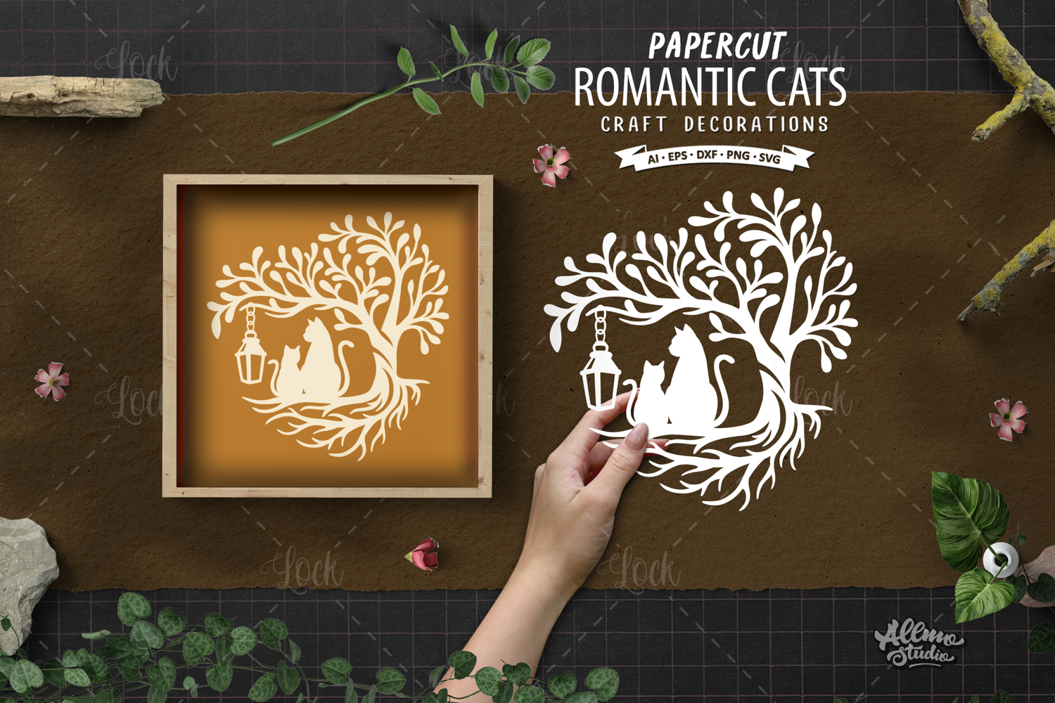 Romantic Cat Trees Silhouette Paper Cut example image 1