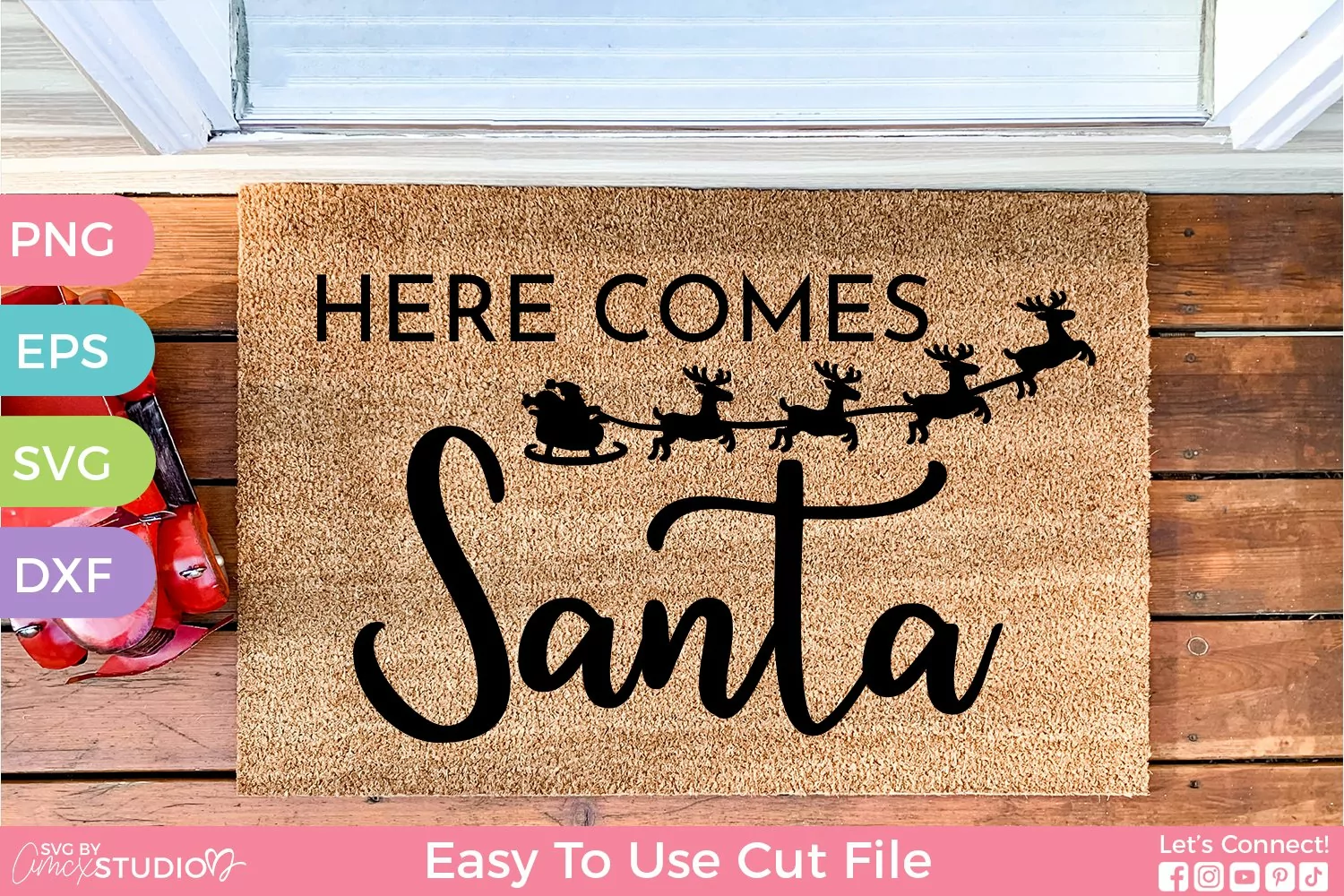 Here Comes Santa SVG | Christmas Doormat SVG Designs example image 1