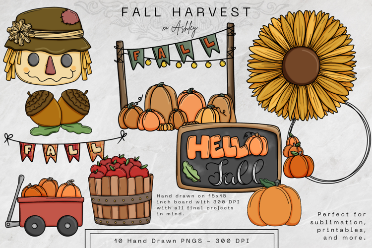 Looking to capture the fall festive vibes? This bundle features 10 hand-drawn PNG files that will add that cozy harvest to your designs.