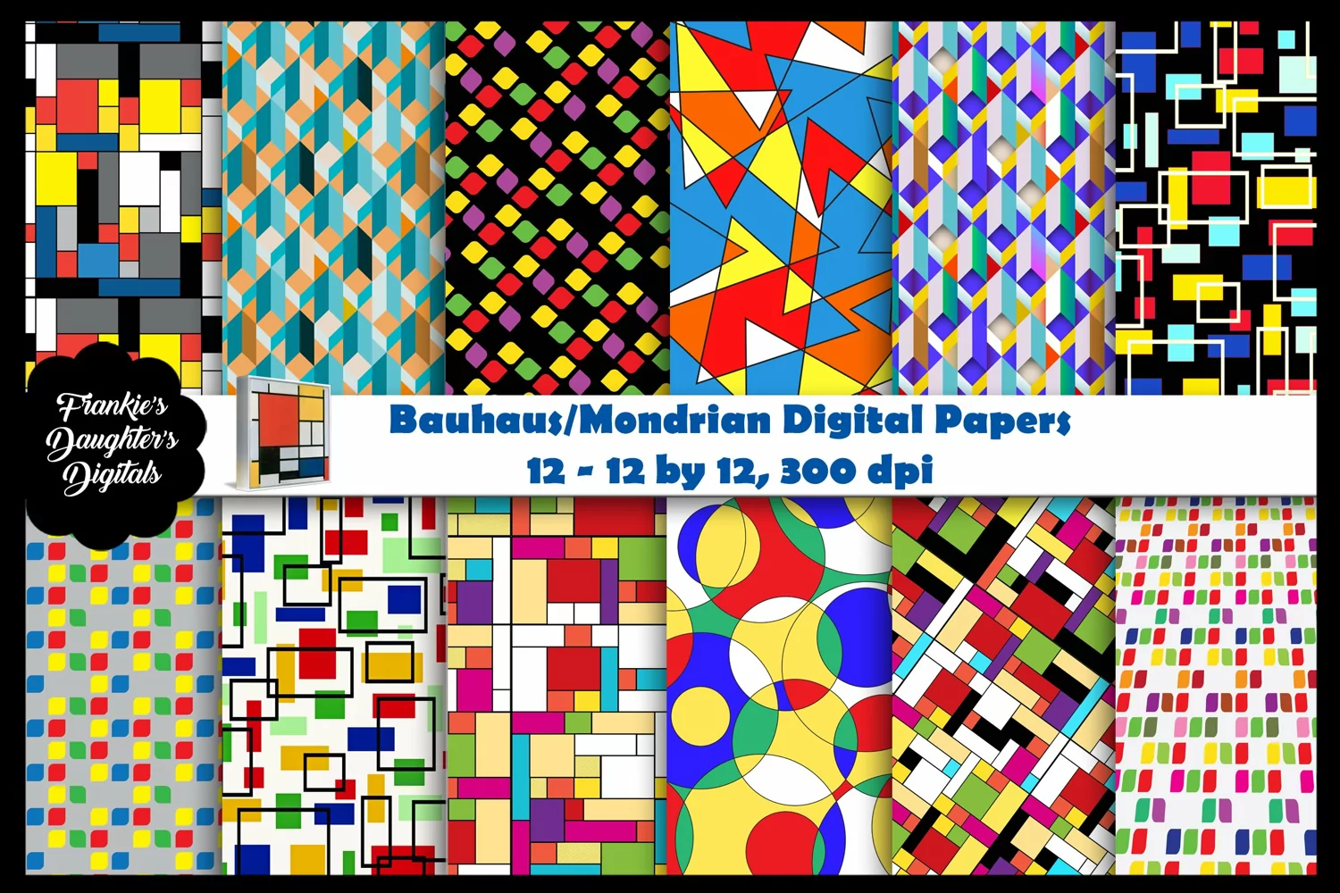Bauhaus/Mondrian Style Geometric Digital PAPERS 12 - 12 by 12 inch papers, 300 dpi