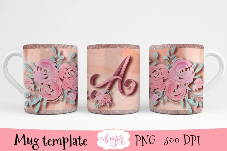 Floral Monogram letter A hand painted by me for mug sublimation (11 oz). This design measures 24 cm X 9 cm (9.44" x 3.54")