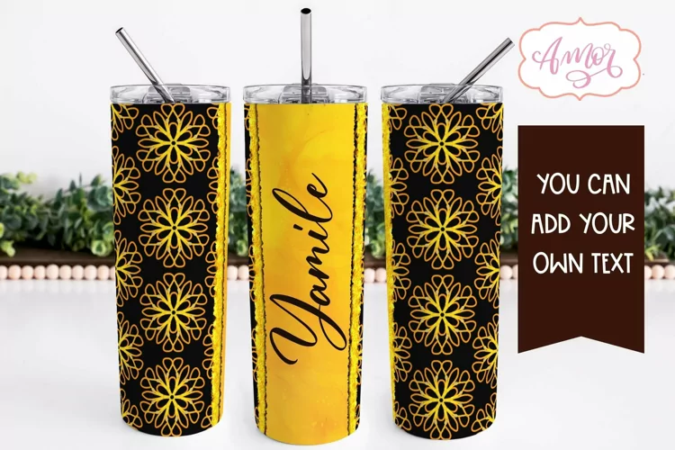 Golden Tumbler Wrap for Sublimation | Customizable tumbler example image 1